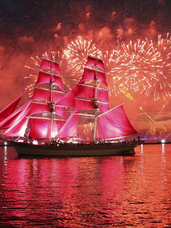 Es una fiesta de despidida con la escuela o colegia dedicada a los escolares. Es una de las fiestas más impresionantes en la ciudad. Por el río Neva por la noche en la temborada de noches blancas, cuando se abren los puentes levadizos, pasa una caravela con el velero rojo, con la música alta y los fuegos artificiales, festejando a los escolares que acaban de terminar el colegio. Junio es la temporada de la terminacion de escuela o colegio, los examenes y fiestas.