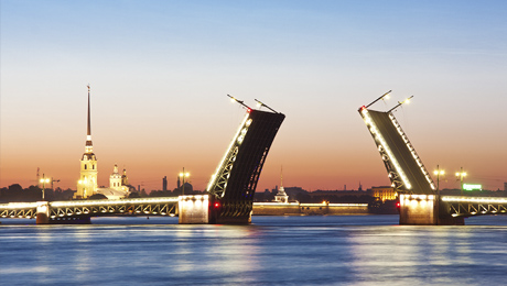 Nuestro grupo de guías les propone una visita nocturna de la ciudad que empieza a las 23’30 y que incluye el recorrido por los malecones del Neva donde se encuentran los palacios, puentes y embarcaderos más emblemáticos de la ciudad. A continuación se realiza un paseo en barco por el río para observar desde él el levantamiento de los puentes. Un coche les devuelve a su hotel al final de la visita, cuya duración es de dos horas y media y es sin duda una de las más memorables que pueden hacer en San Petersburgo.